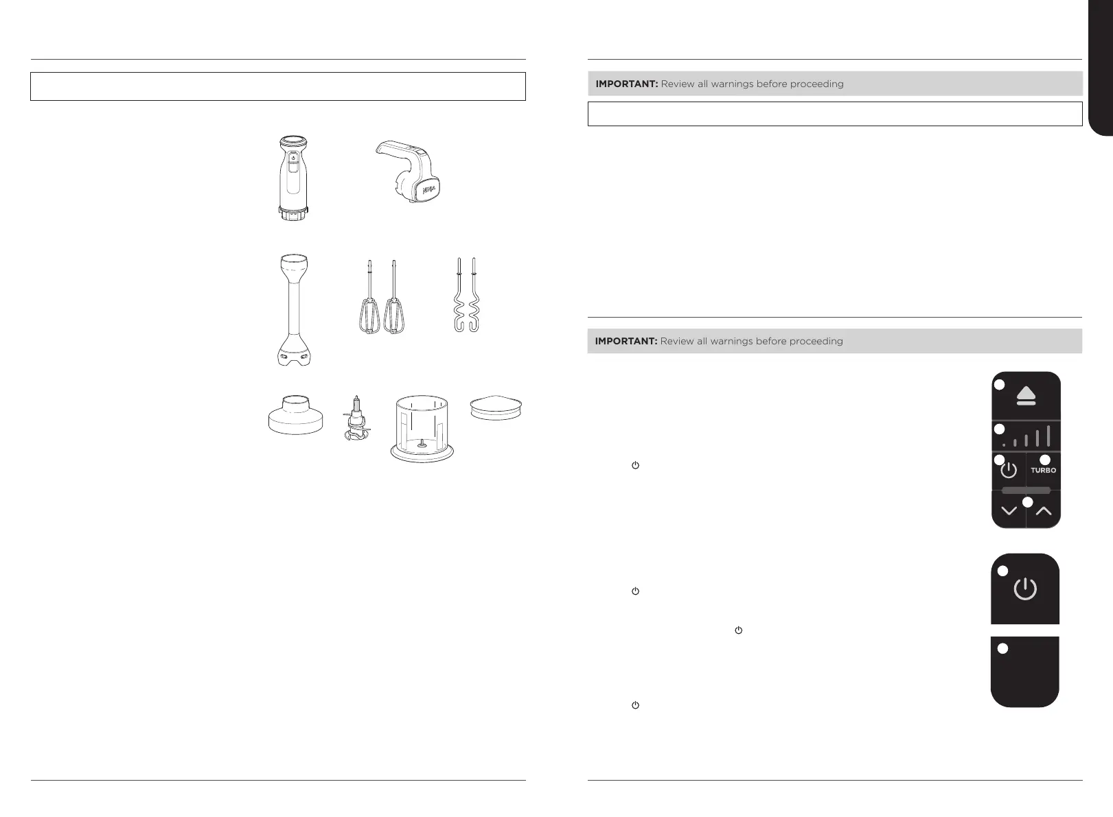 1 Remove all packaging materials from the unit. Exercise care when unpacking the hand blender
