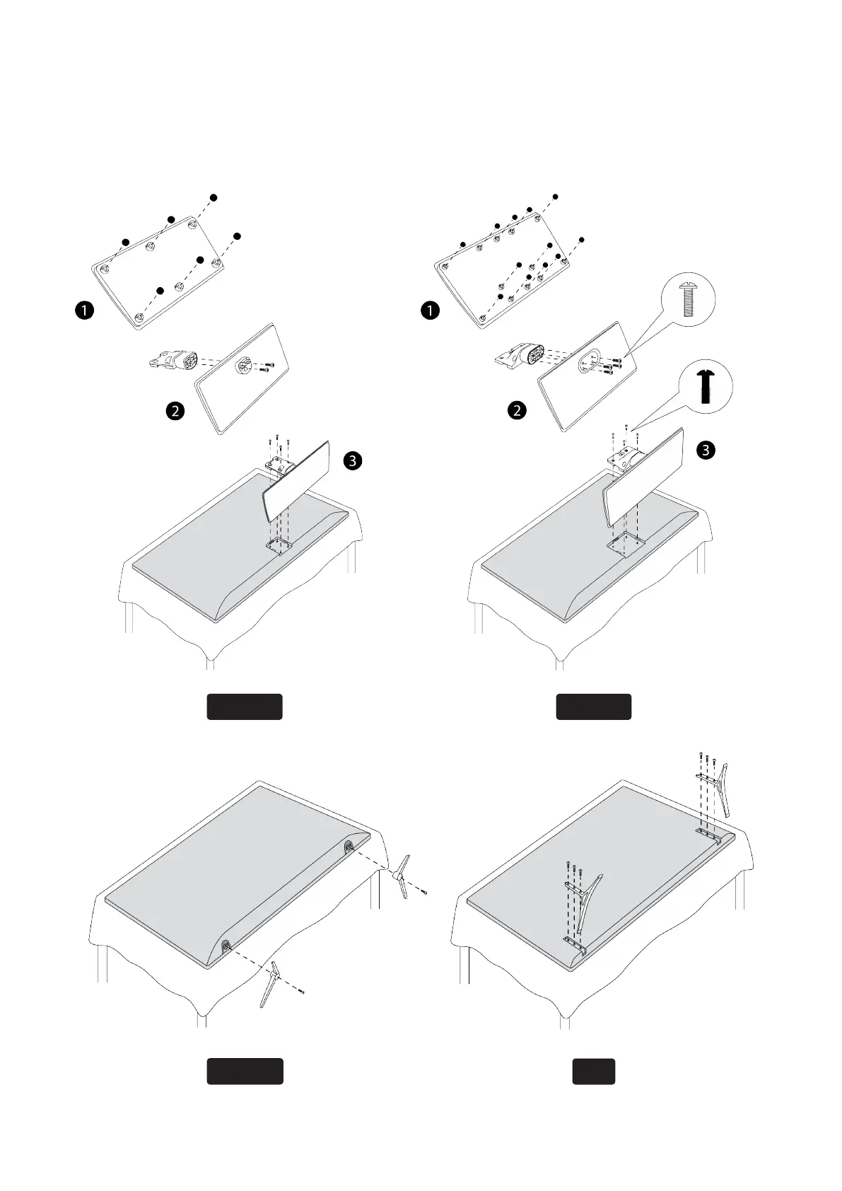 2. Hold the TV over the pedestal so that it coincides with the pedestal mounting point and then lower it to