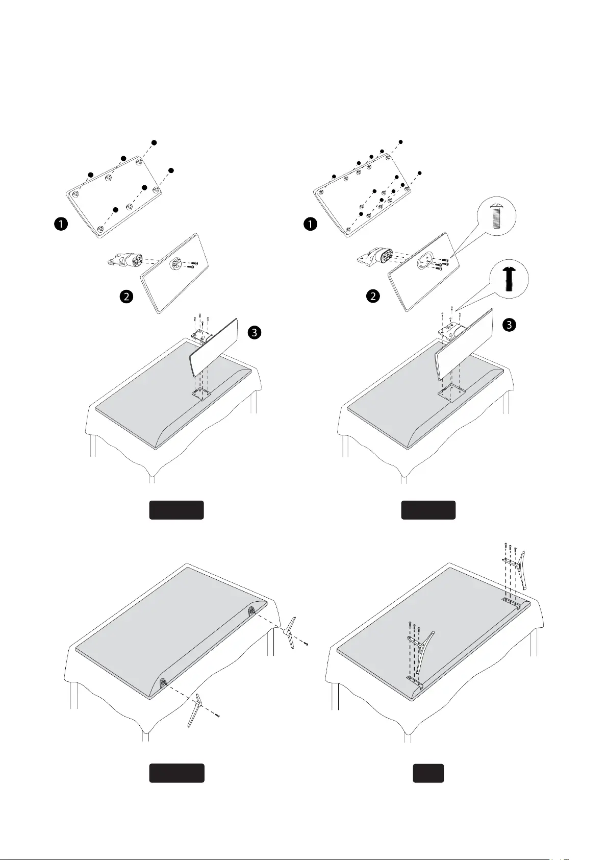 2. Hold the TV over the pedestal so that it coincides with the pedestal mounting point and then lower it to