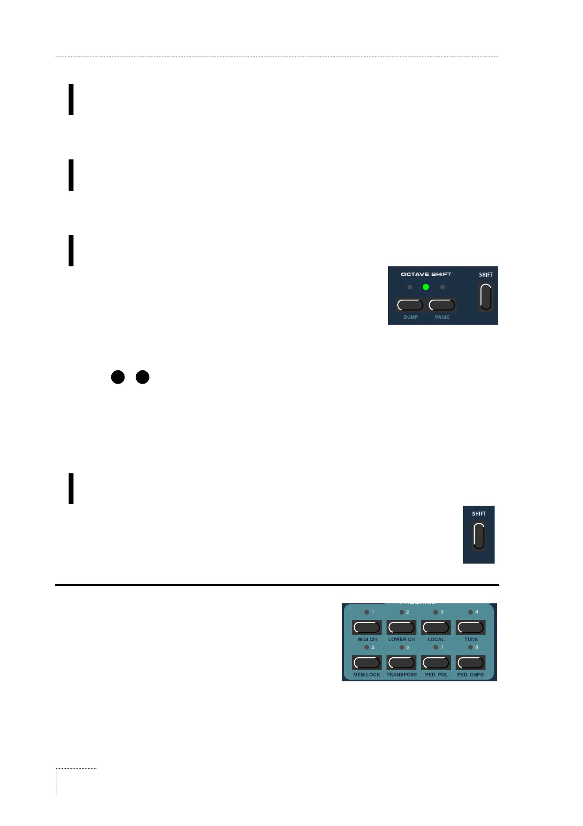 [OCTAVE SHIFT]ボタンの右側に[SHIFT]ボタンがあります。このボタンは、シス