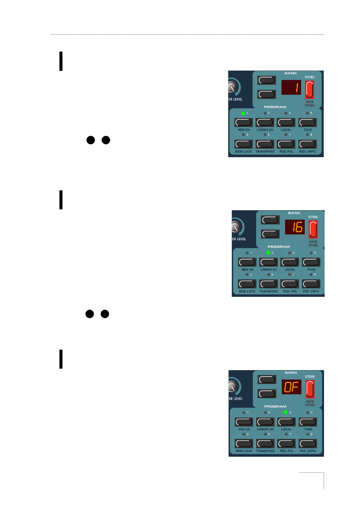 LOWER CHとMIDI CH(上記参照)を同じ番号に設定すると、MIDIノートを受信した