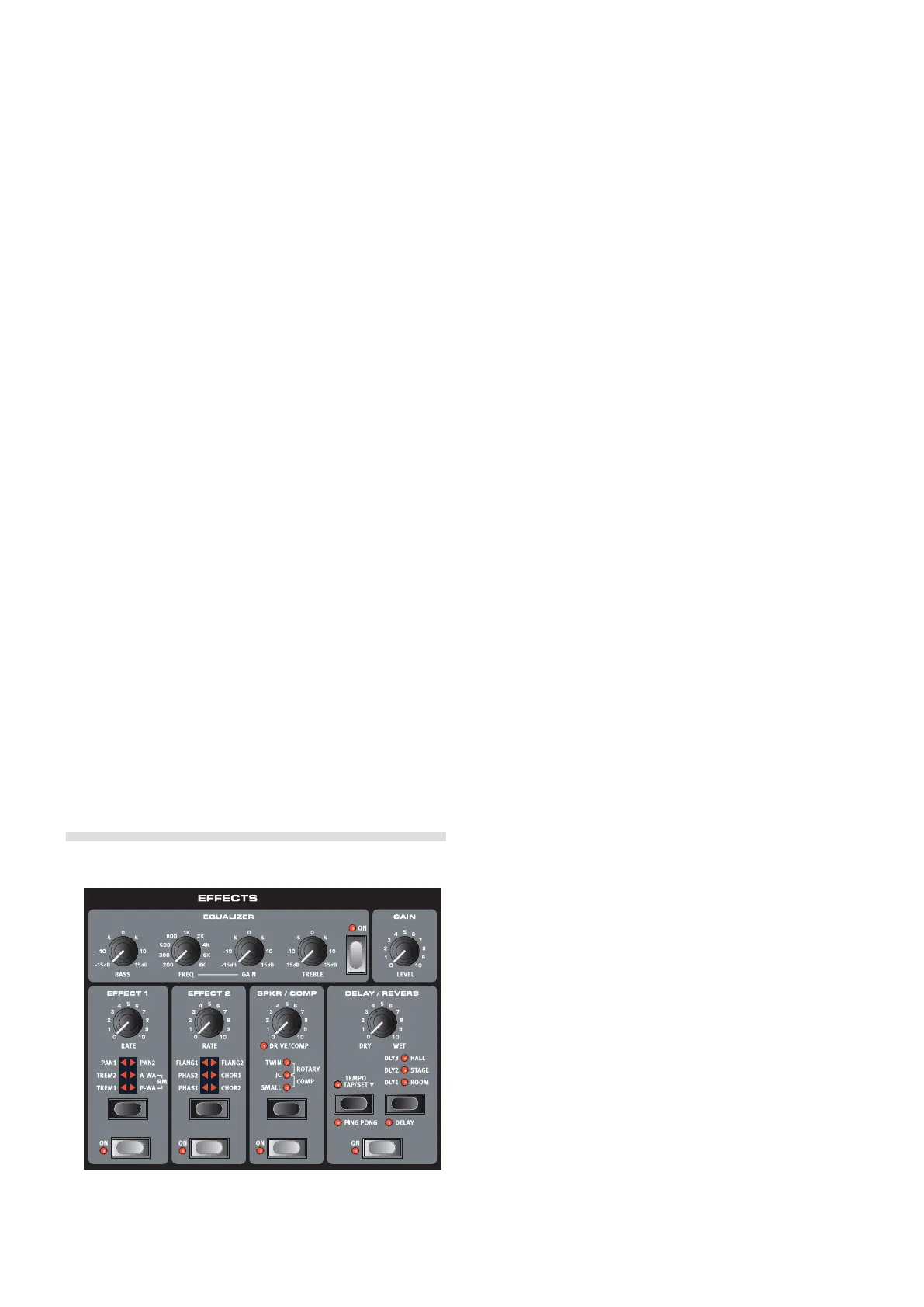 the tremolo and pan in the Effects 1 section. The Rate knob control the