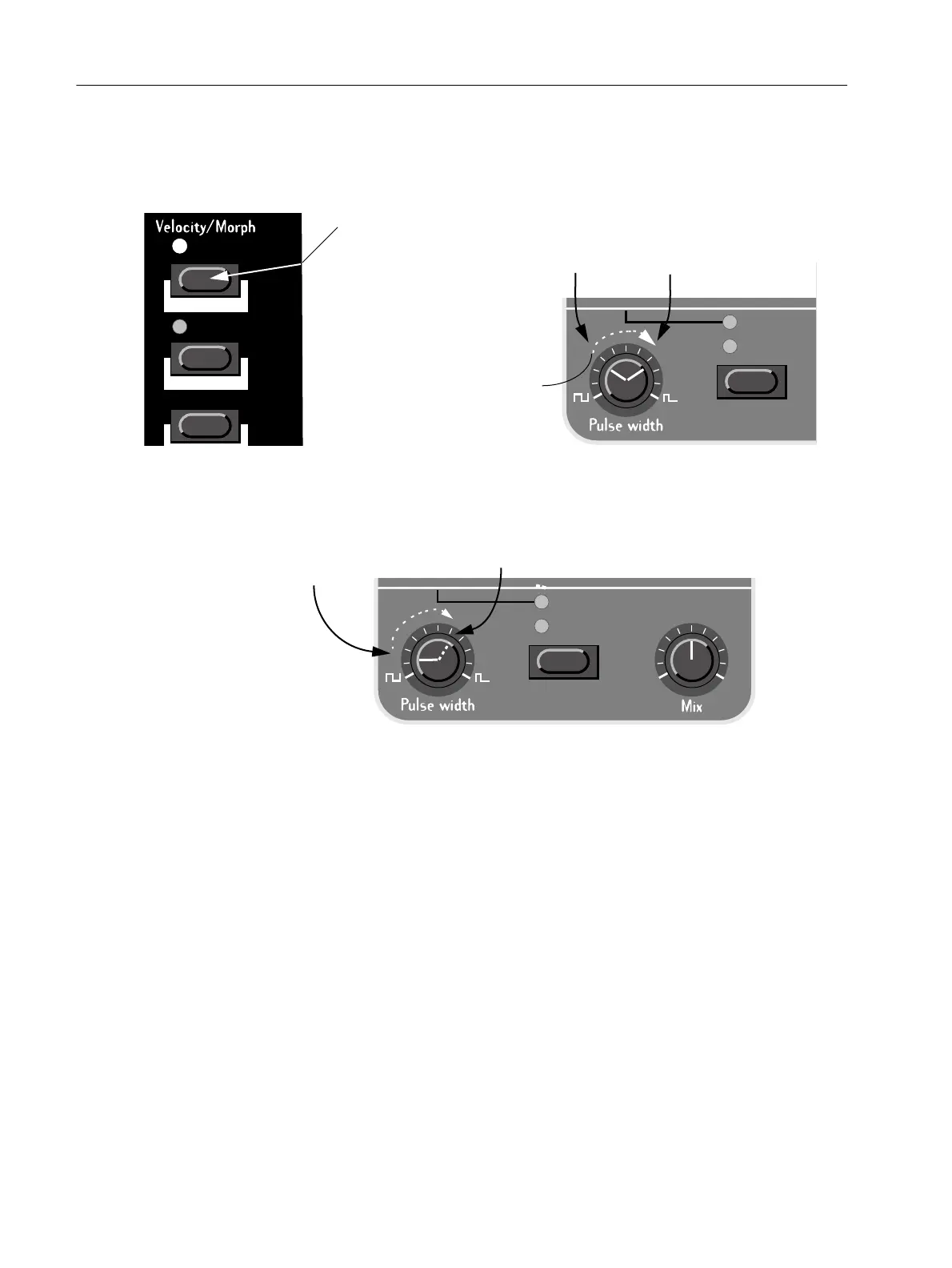The Velocity/Morph LED is now lit to indicate that at least one parameter in the sound is velocity depend-