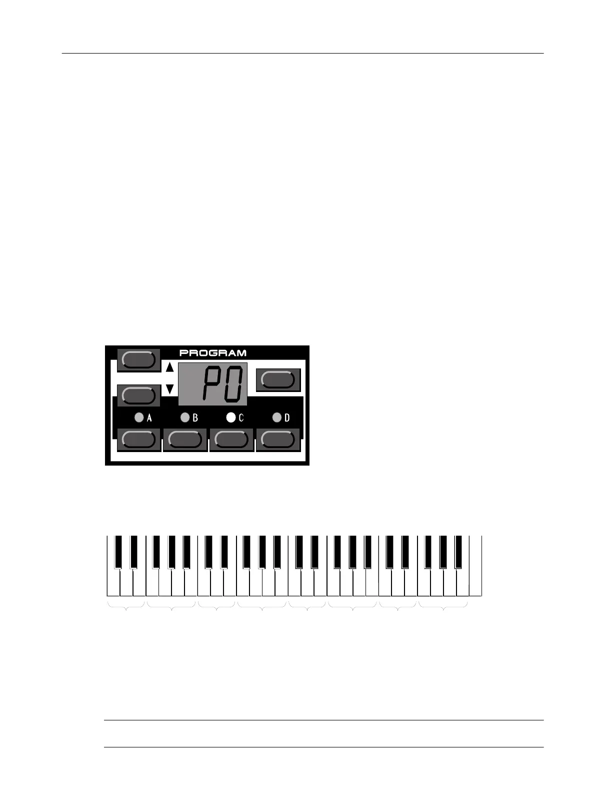 2. Use the Program Up/Down buttons to scroll past Program number 99 and select one of the Percussion Kits.
