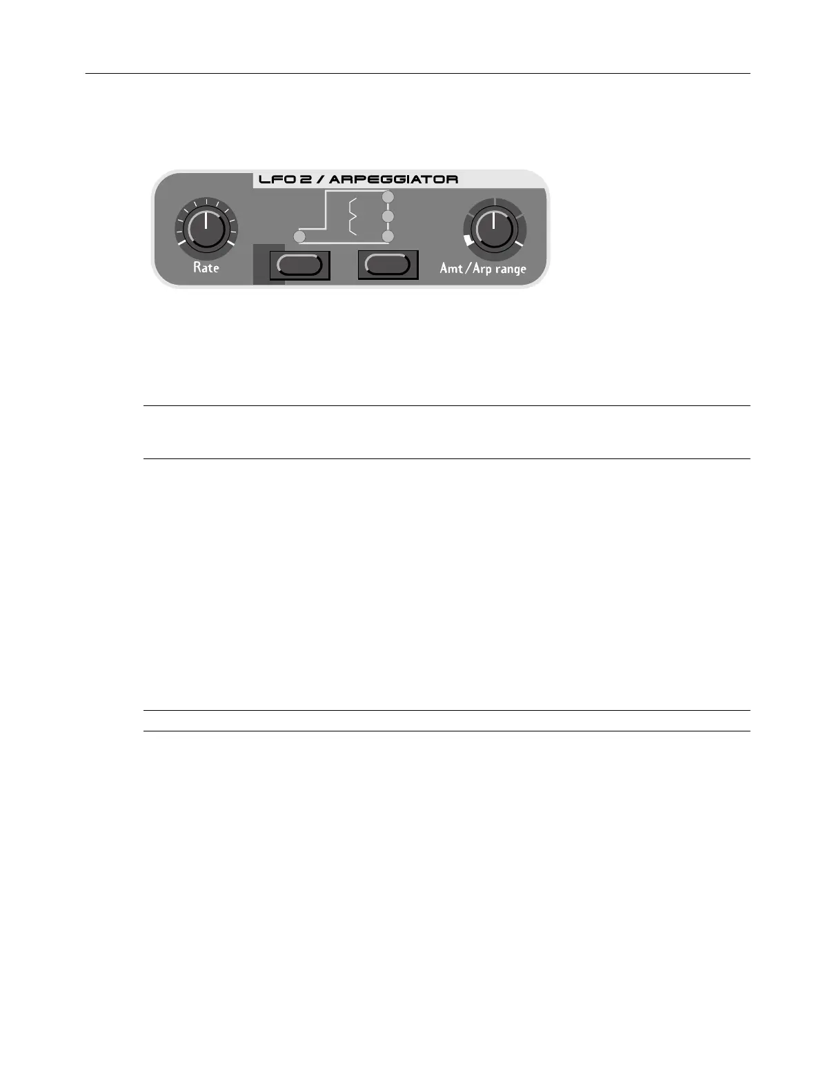 LFO 2 works as an arpeggiator (or an echo; see below). When the indicator is dark, it works as a regular