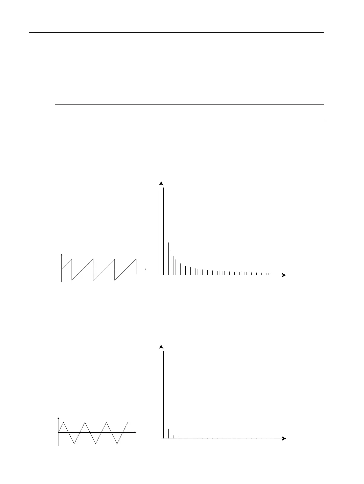 The Sawtooth wave has a simple spectrum. All harmonics are present in the wave, in proportional values.