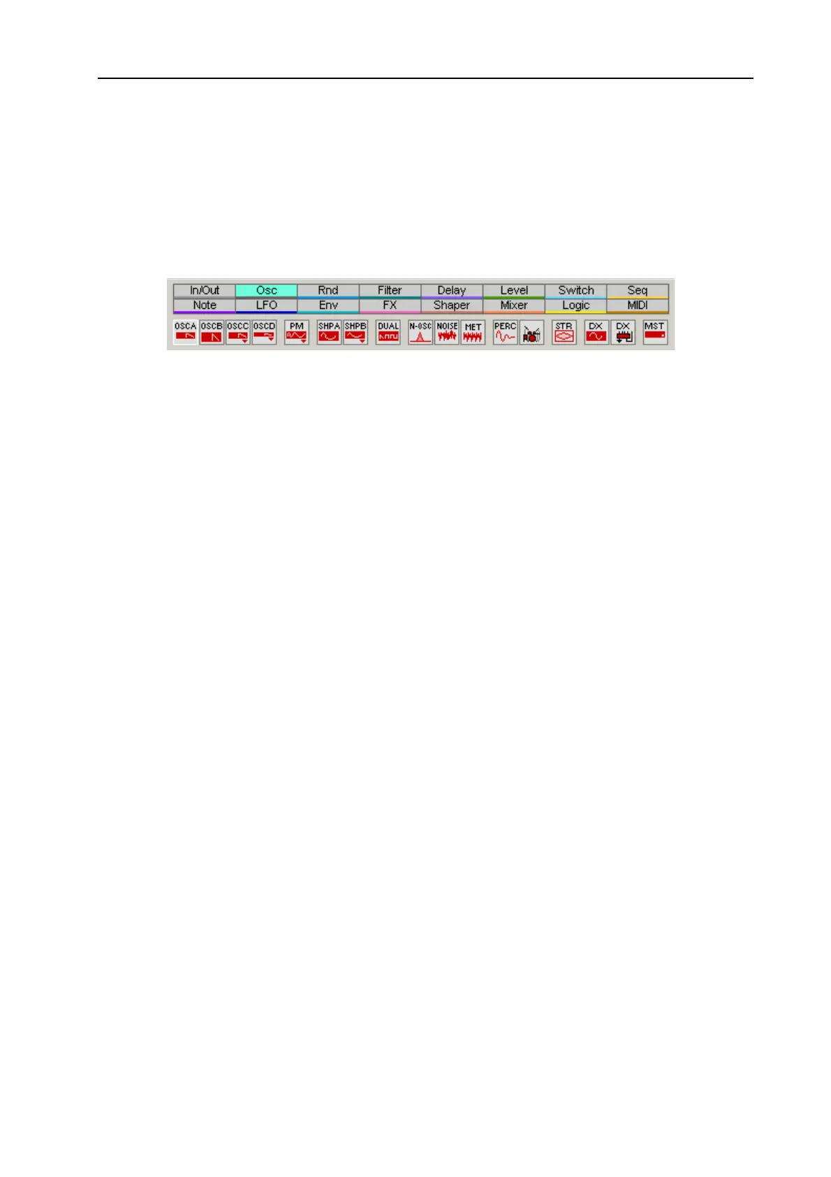 The Nord Modular G2 modules are grouped in 16 module groups, which you access by clicking on the