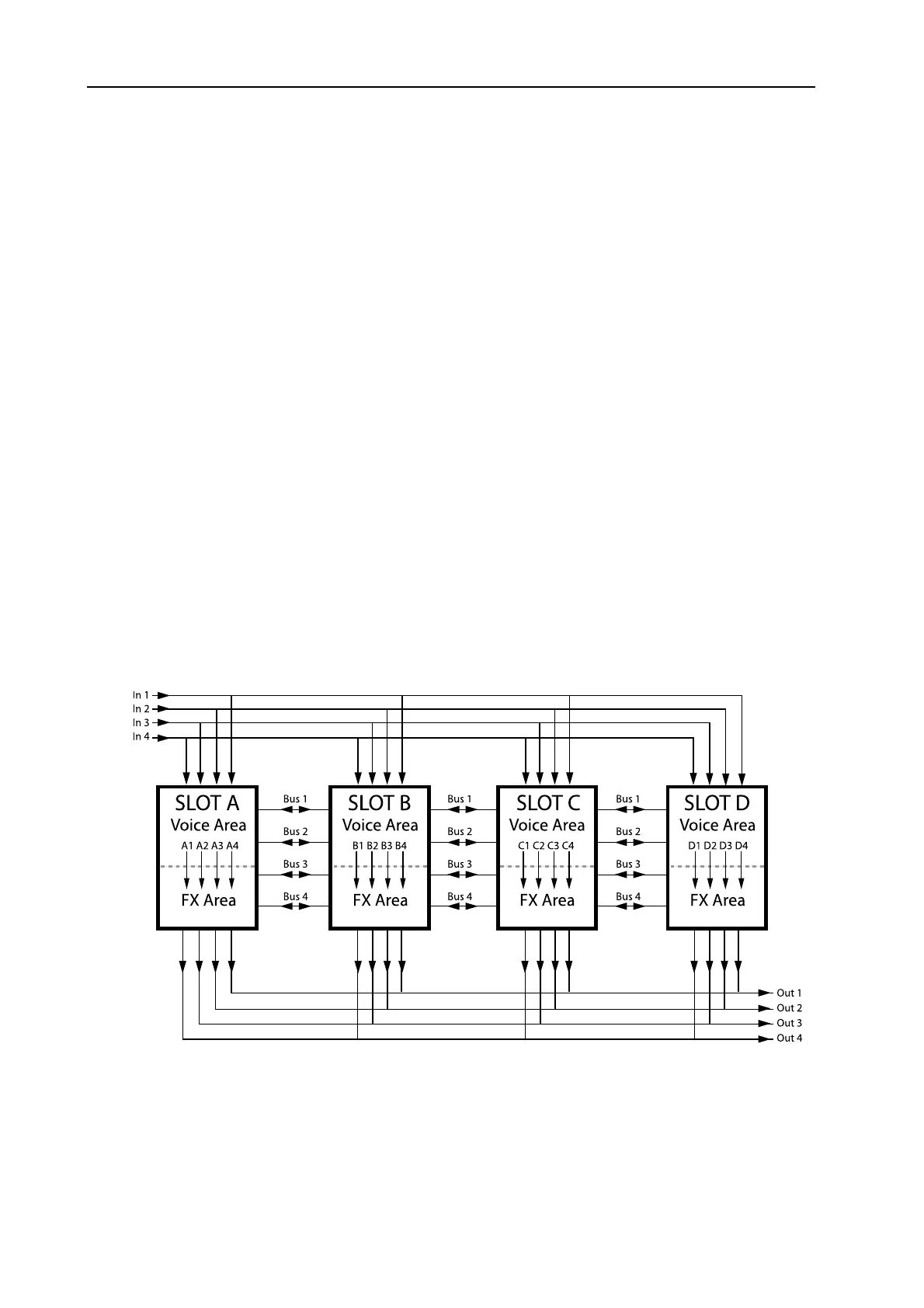 that you could actually route audio back from the FX Area to the Voice Area if you like. The figure below