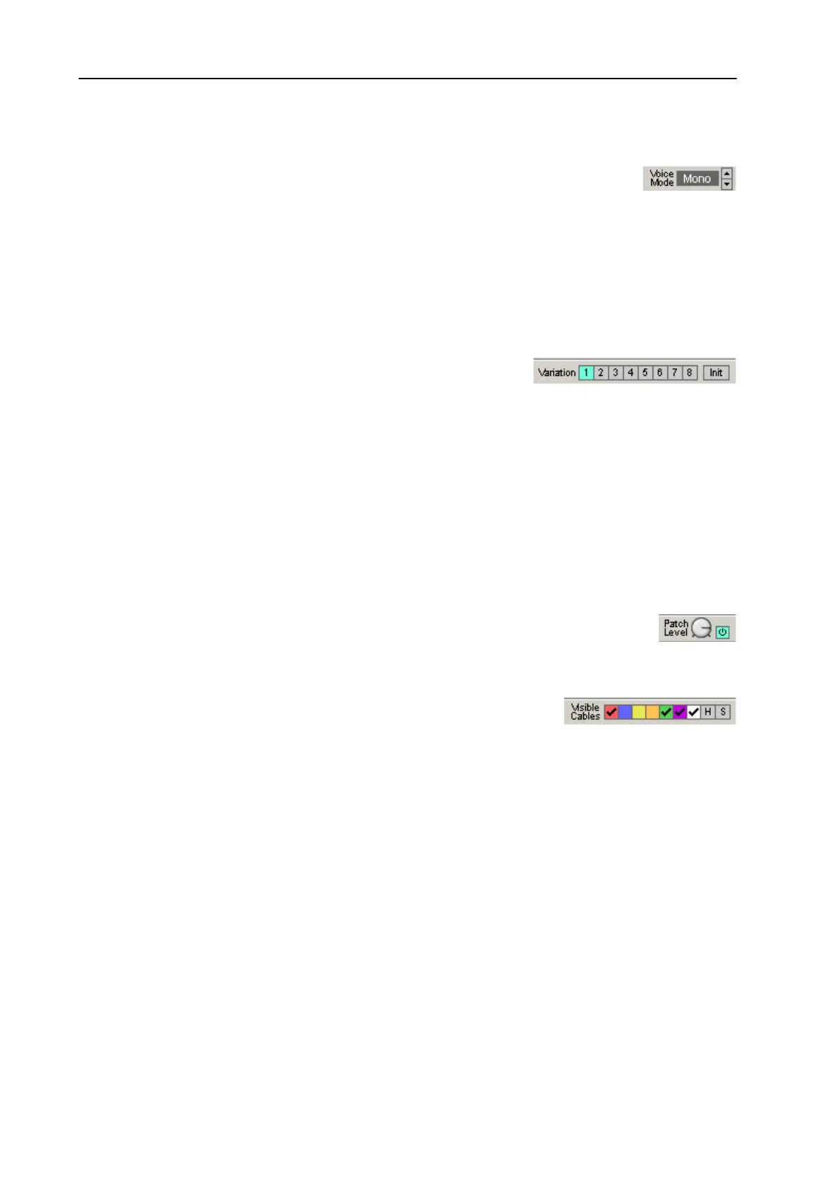 Click the {H} button to hide all visible cables in the active Patch. “Invisible” cable connections will be