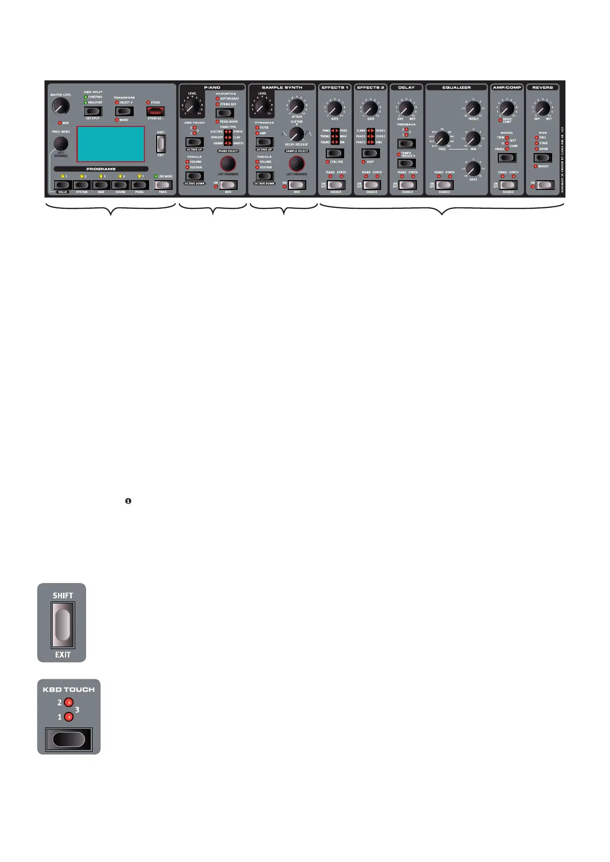Nord Piano 3のフロントパネルには4つのセクションがあります。いちばん左側にあるのがプログラム・セ ク シ ョ ン