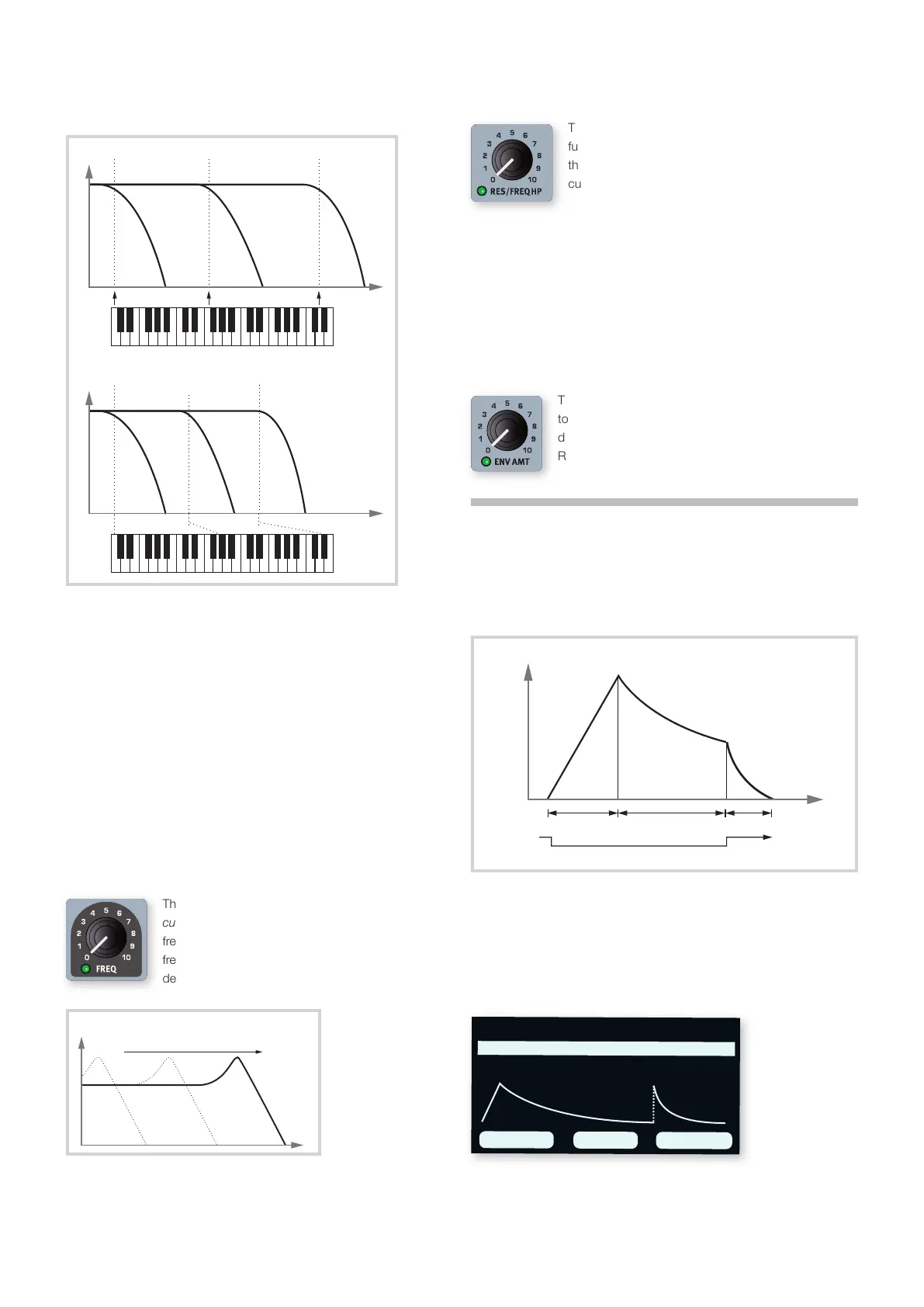 pressing the ENVELOPE button in the OSCILLATORS, FILTER and AMP