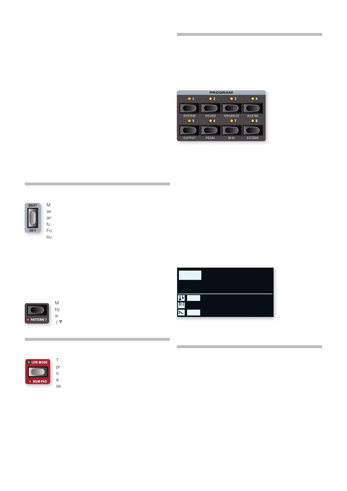 by the internal keyboard. Focus the Organ, Piano or Synth sections,