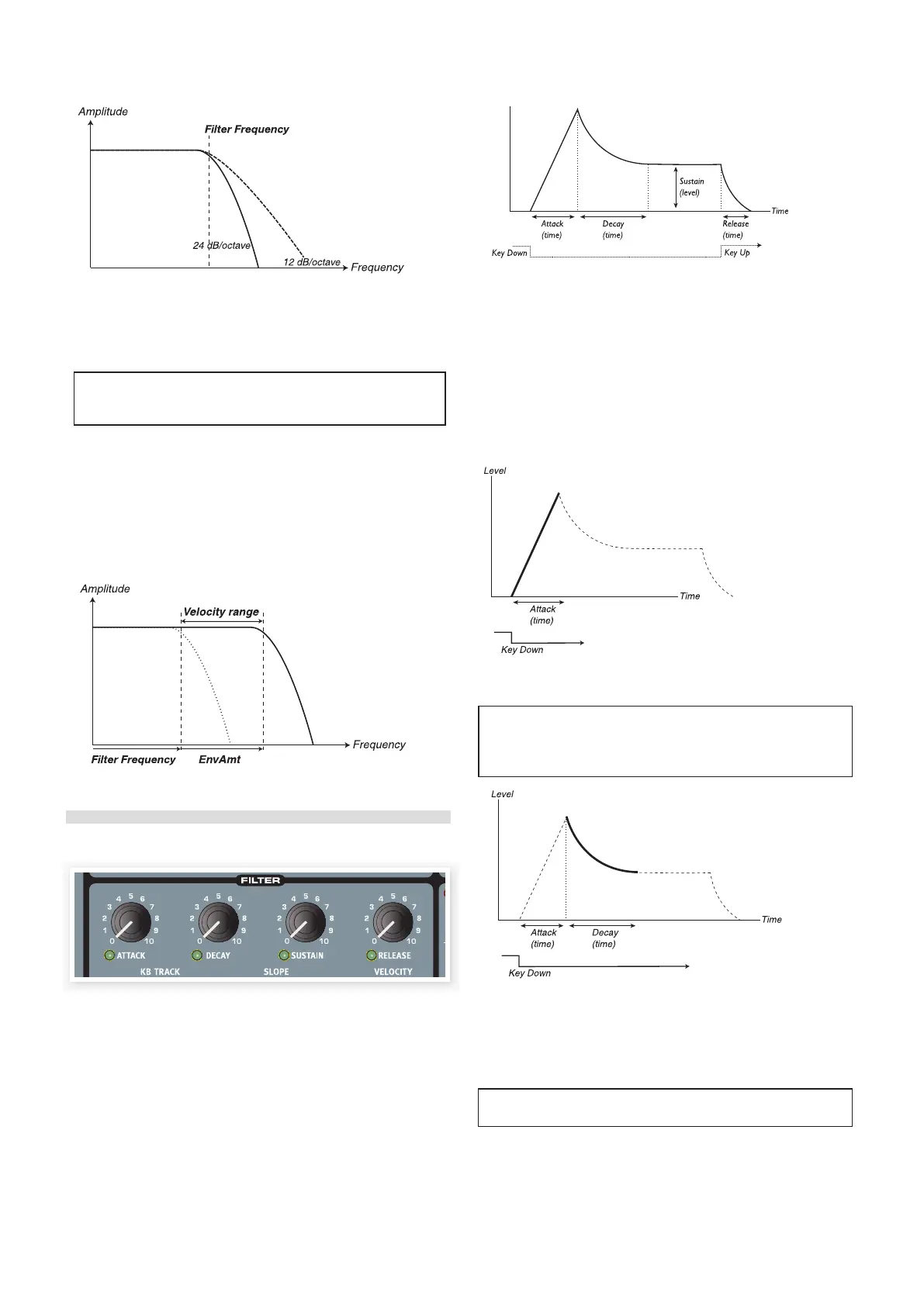 フィルター・エンベロープはカットオフ・フリケンシーに作用し、鍵盤を弾