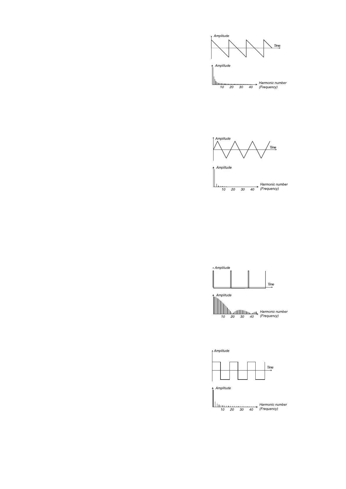 図では各波形の倍音構成を模式的に表示しています。実際には倍音は無