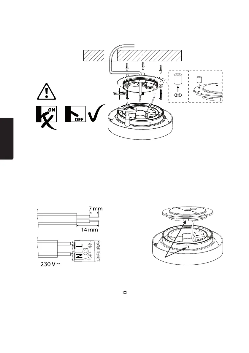 C) Montering mot tak/vegg med utenpåliggendekabel