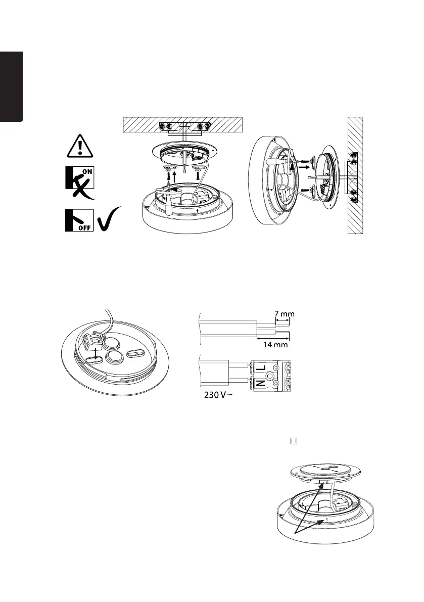 1. Themounting plate is prepared for attachment to aceiling pattress. Measure