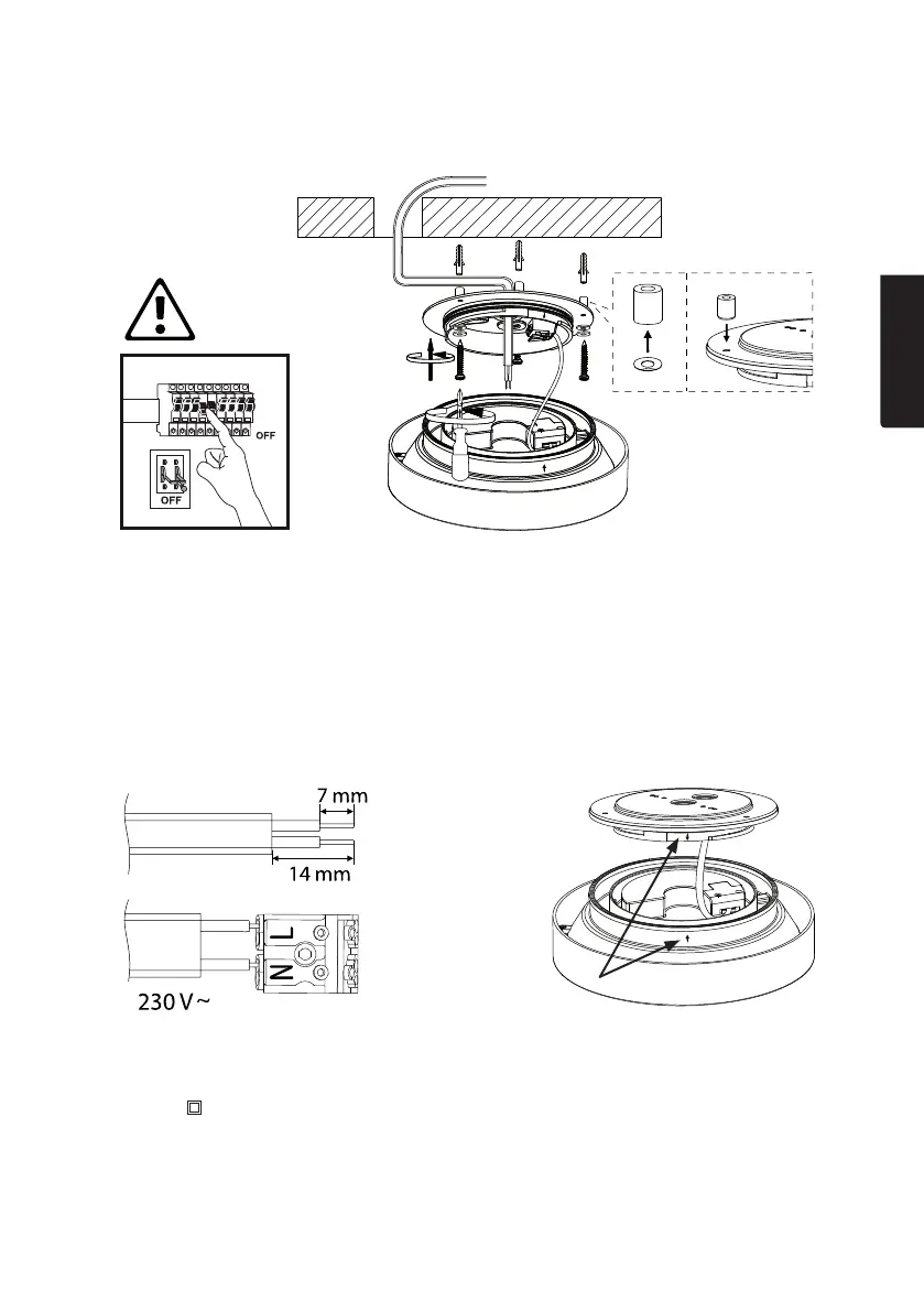 C) Montering mot tak/vägg med utanpåliggandekabel