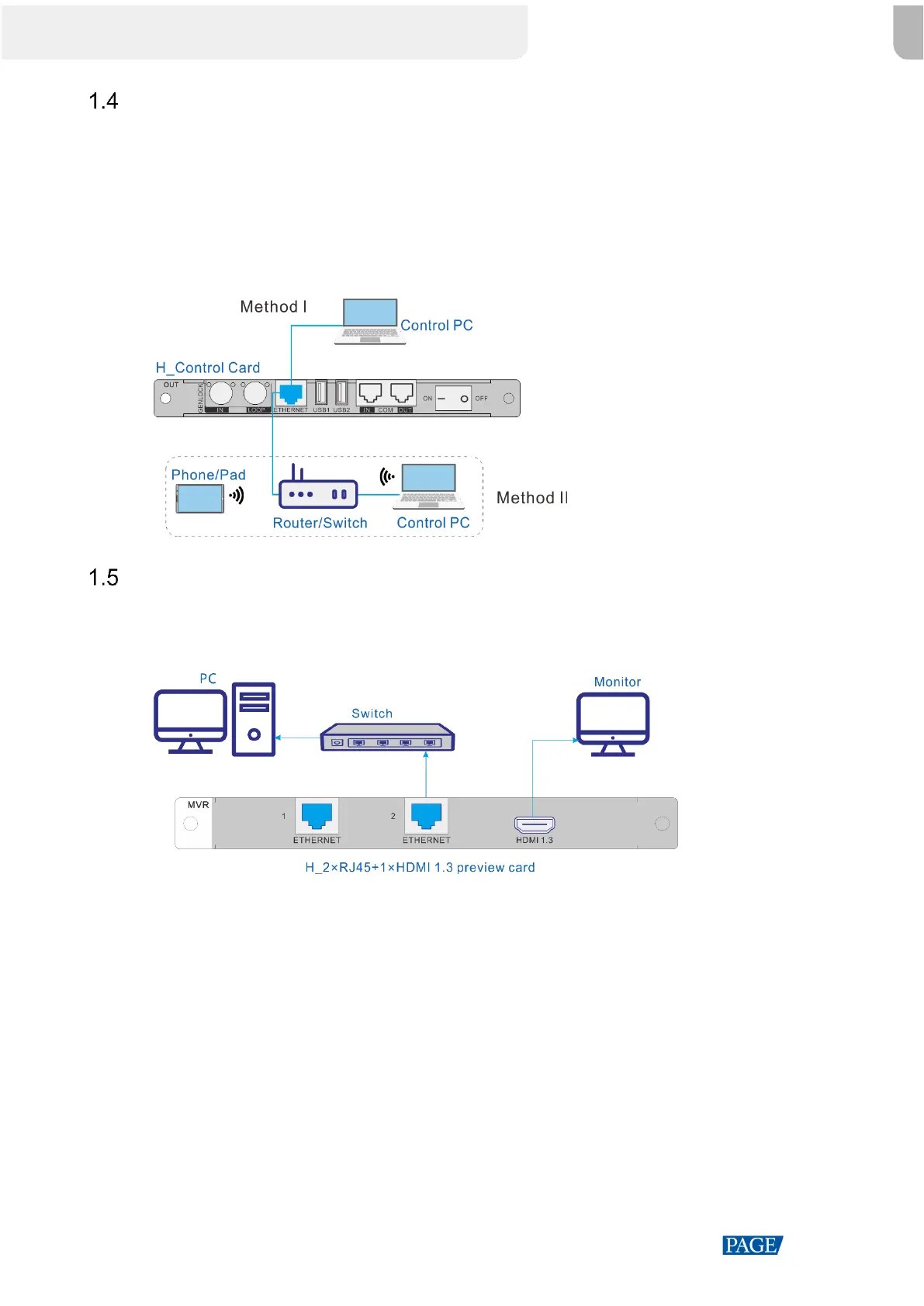 Connect one of the Ethernet ports on the preview card and the Ethernet port of the control card to the