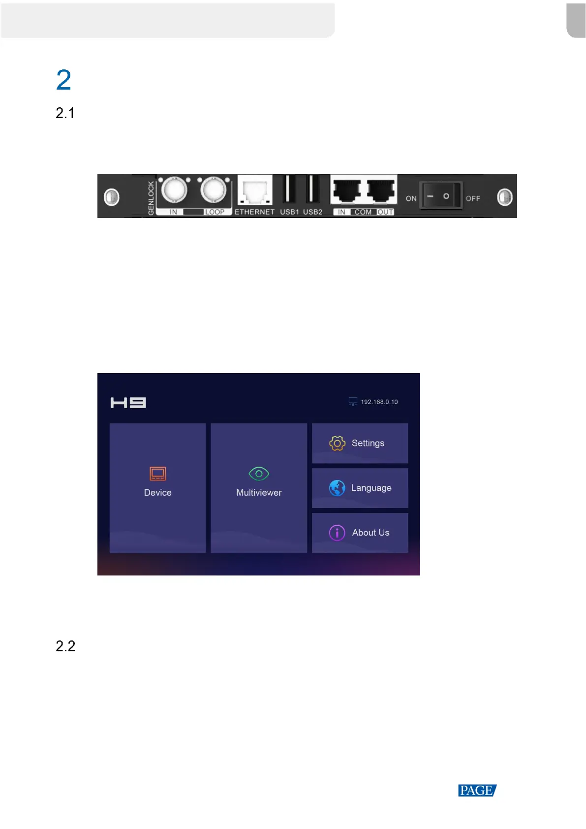 The device IP address is displayed at the top right on the home screen. The default IP address is