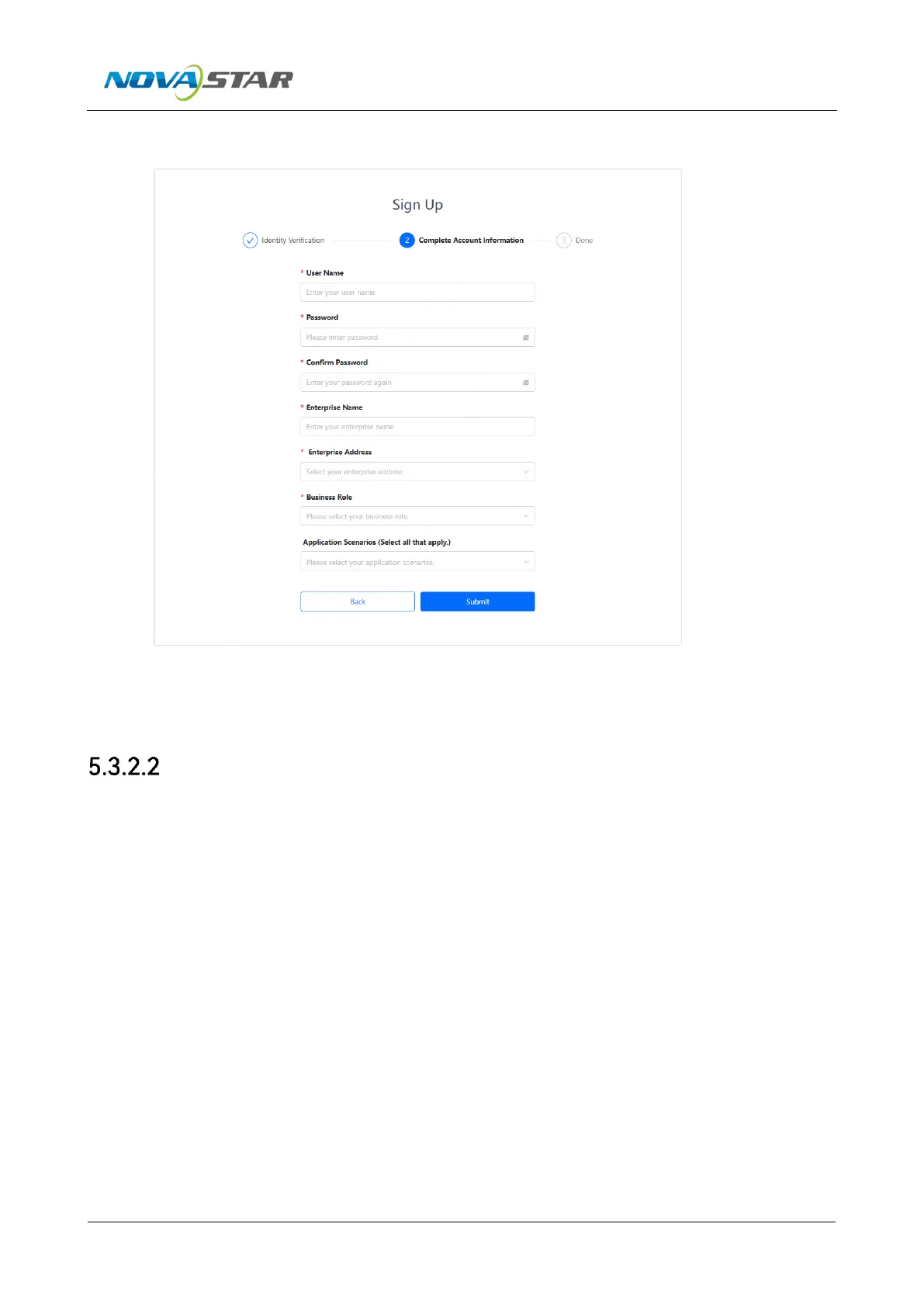 Step 11 Fill in the user name, password, and enterprise information, then click Submit to complete