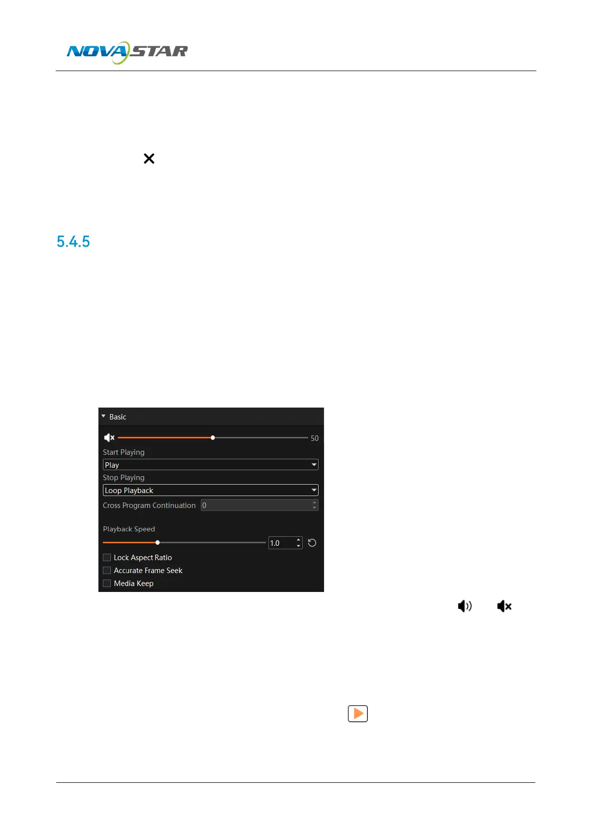 Volume adjustment: Adjust the output volume of the program media. Click or to