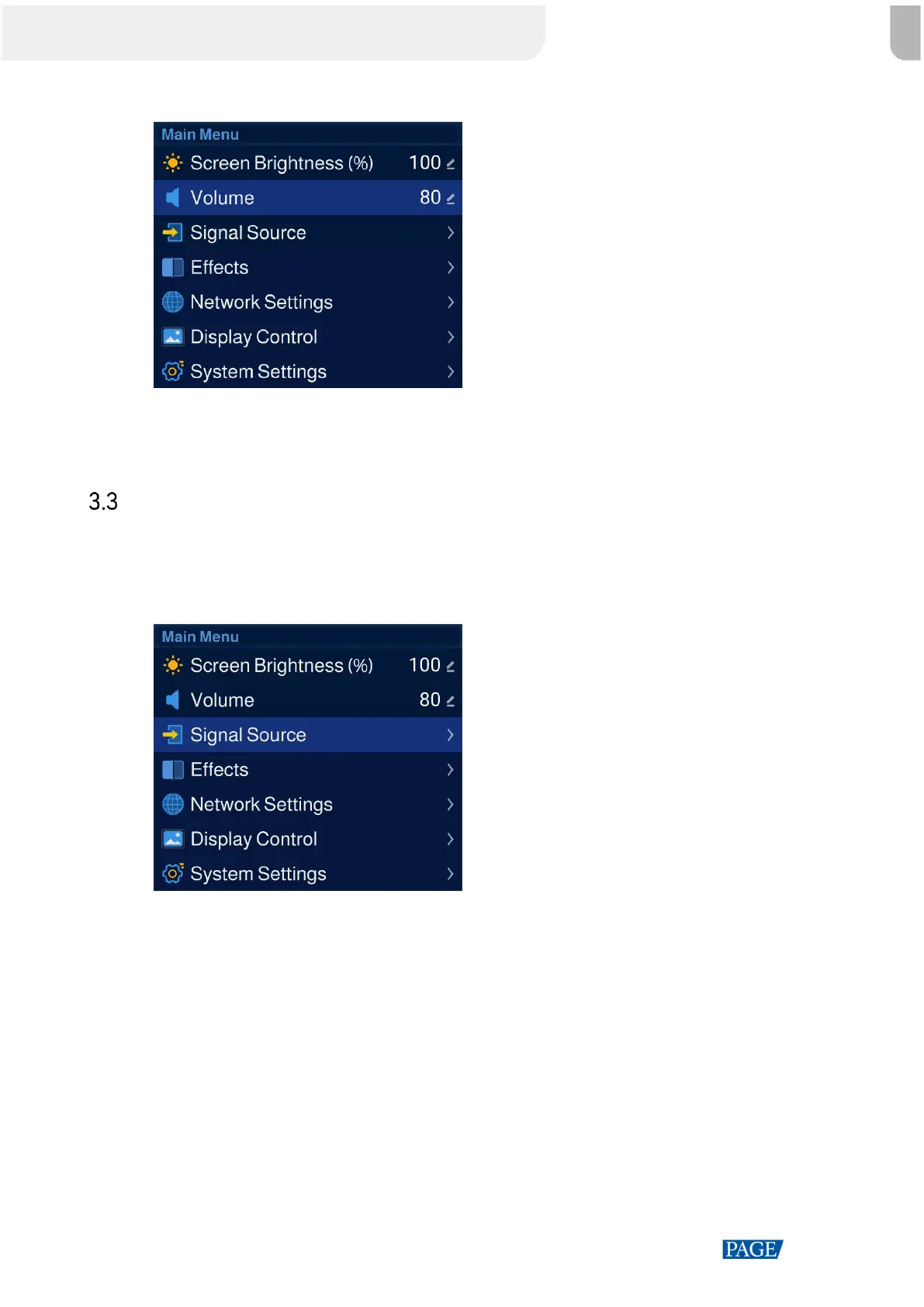 Step 1 From the main menu, select Signal Source and press the knob.