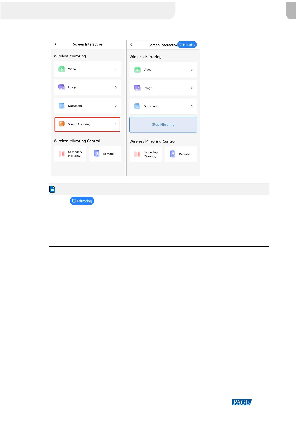 Secondary mirroring: Control the screen in real-time from your phone/tablet.