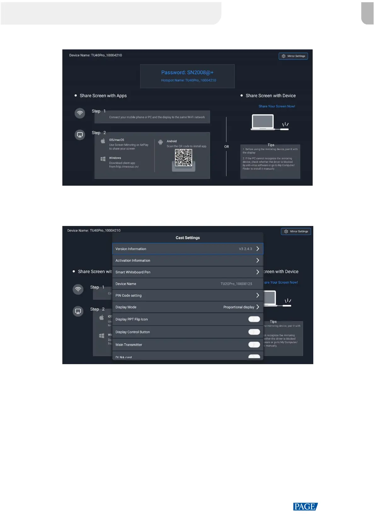 Step 2 Press the Confirm button on the remote to navigate to screen mirroring setup.