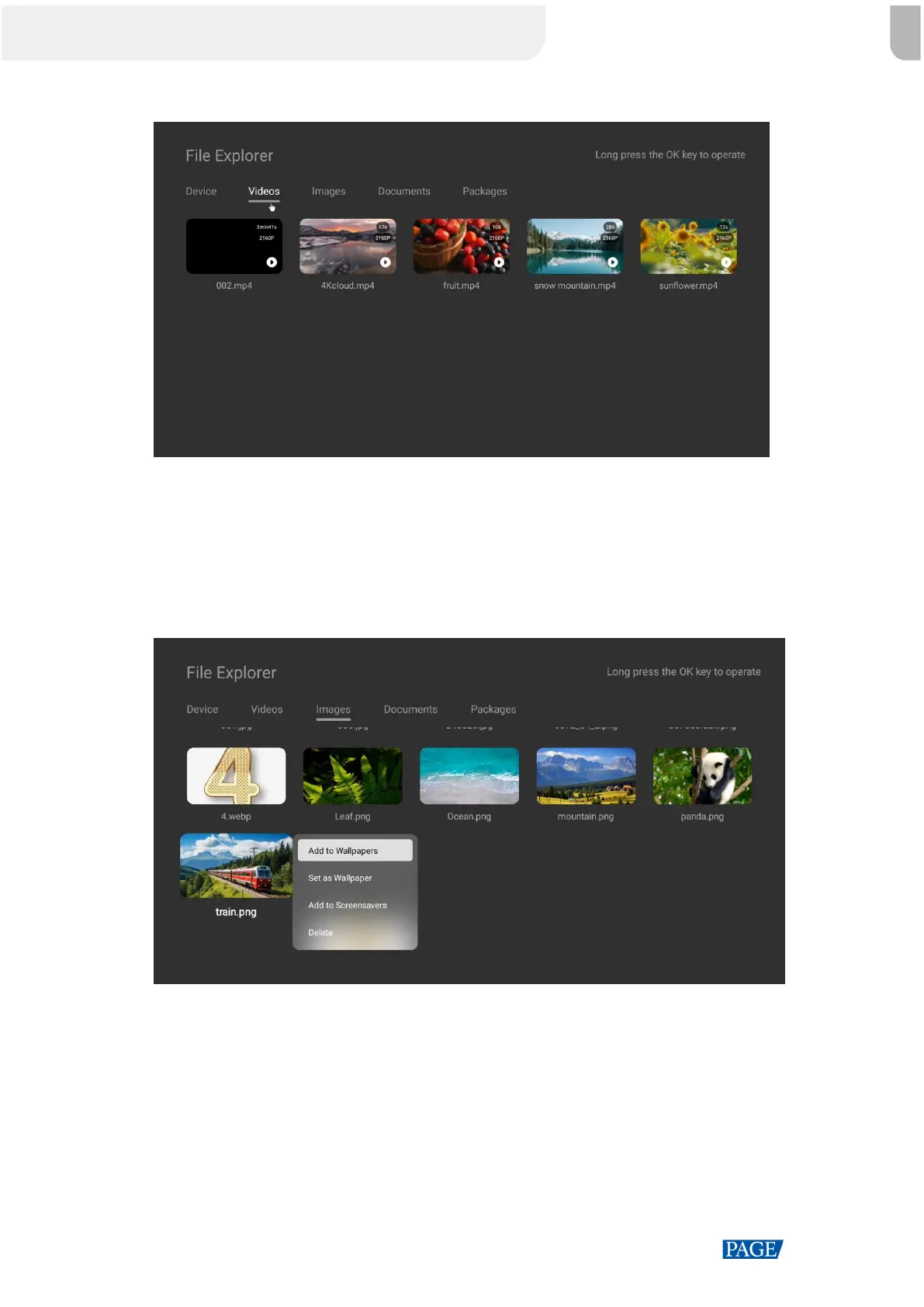 selected package, or long press the Confirm button on the remote to delete it.