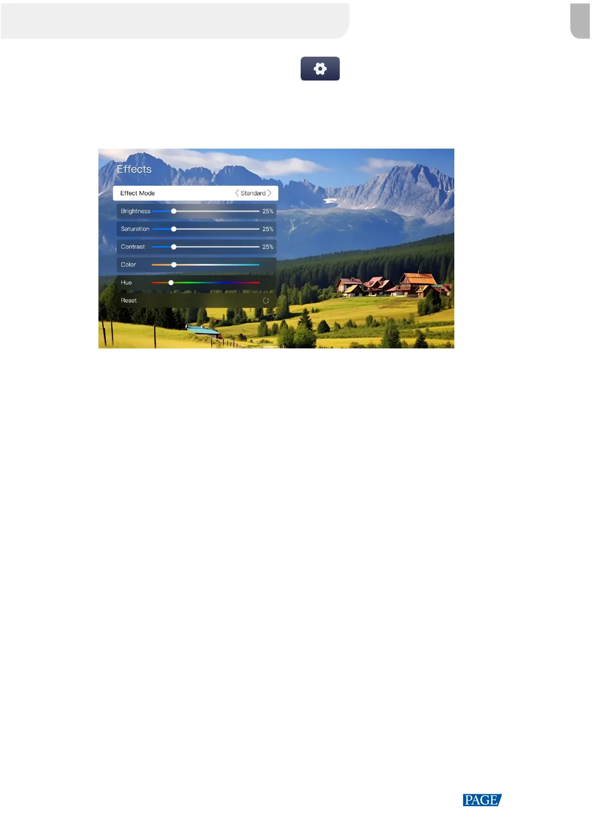 7. Select Effect and press the Confirm button on the remote to open the effect
