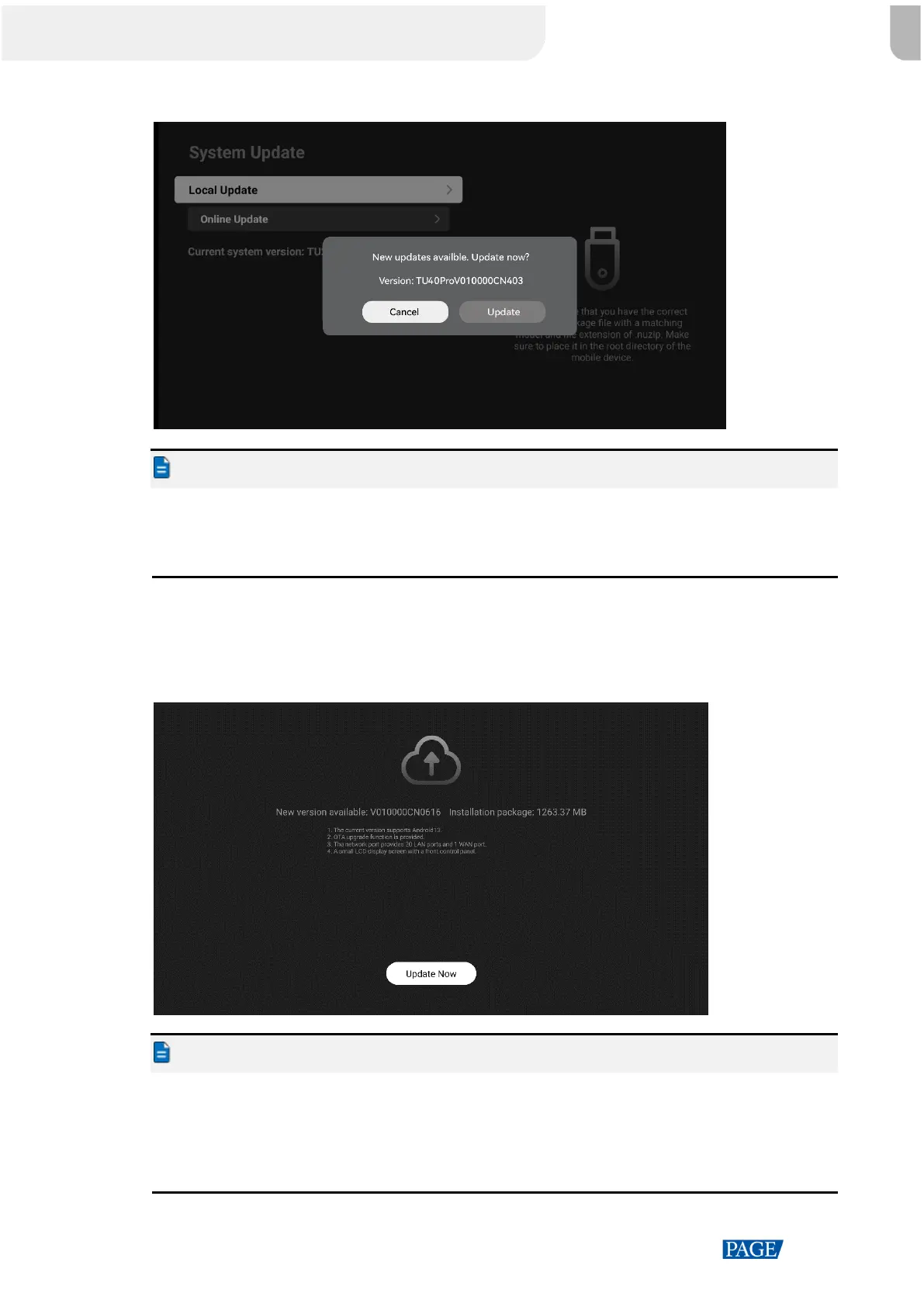 The online update consists of two stages: After detecting the latest version, select Update Now. If