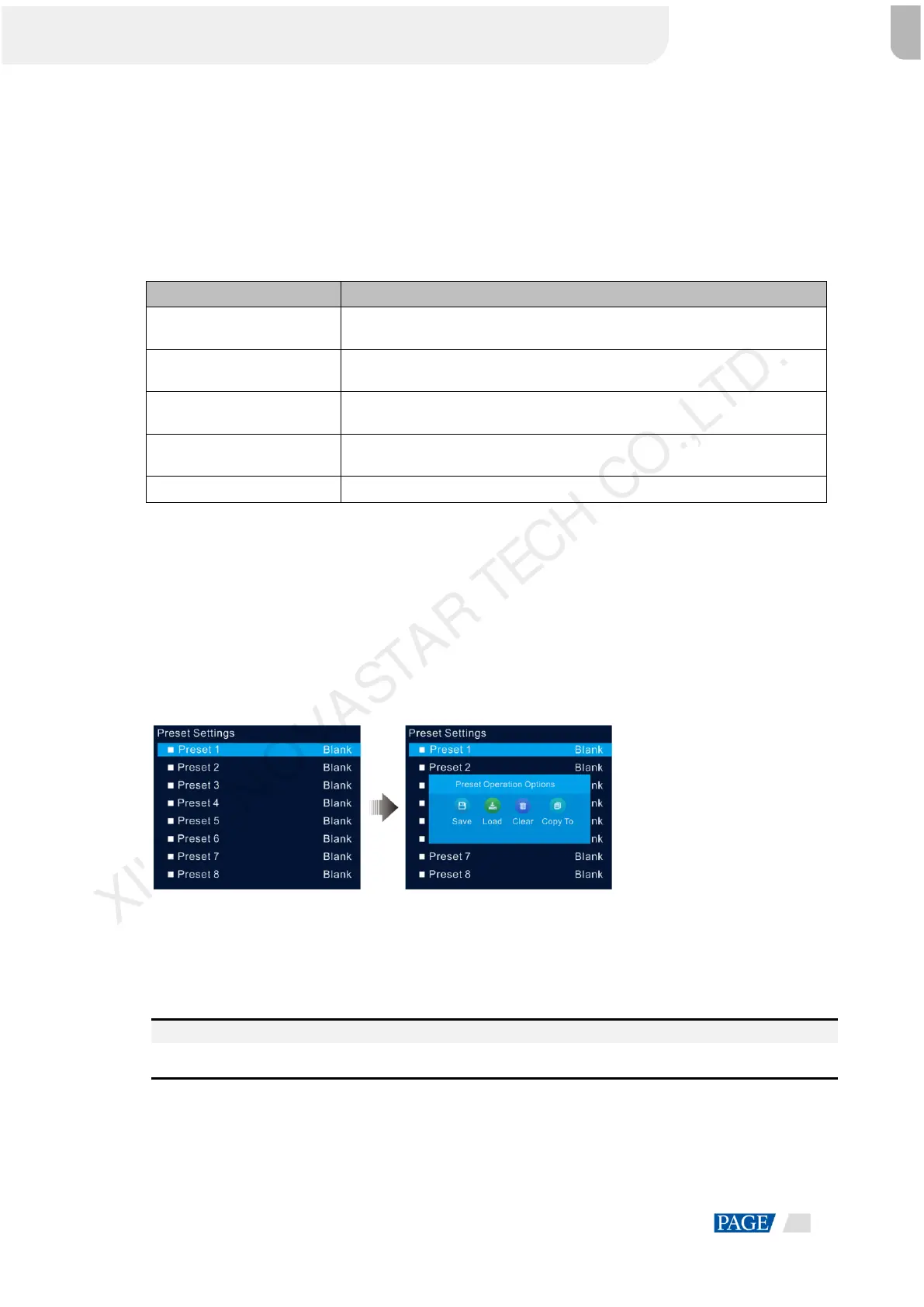 Clear: Clear all the contents in the selected preset.