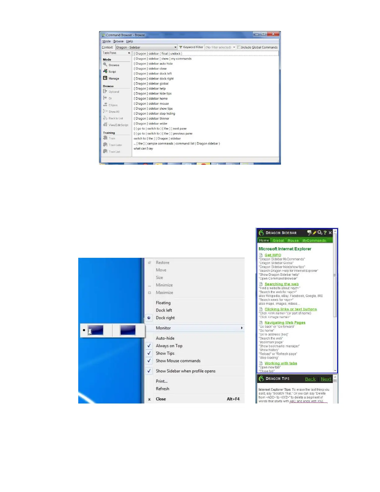Step 3: Right-click the Dragon Sidebar. This opens its menu. Note what is available there, including hiding the