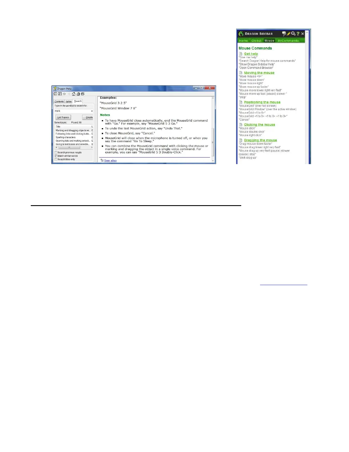 many commands and tips. You may use mouse or voice to access its panes, tabs, and links. Its right-