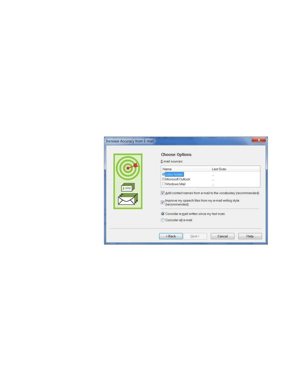 (this may take a moment). Check the box of the e-mail program(s) you want Dragon to analyze here.