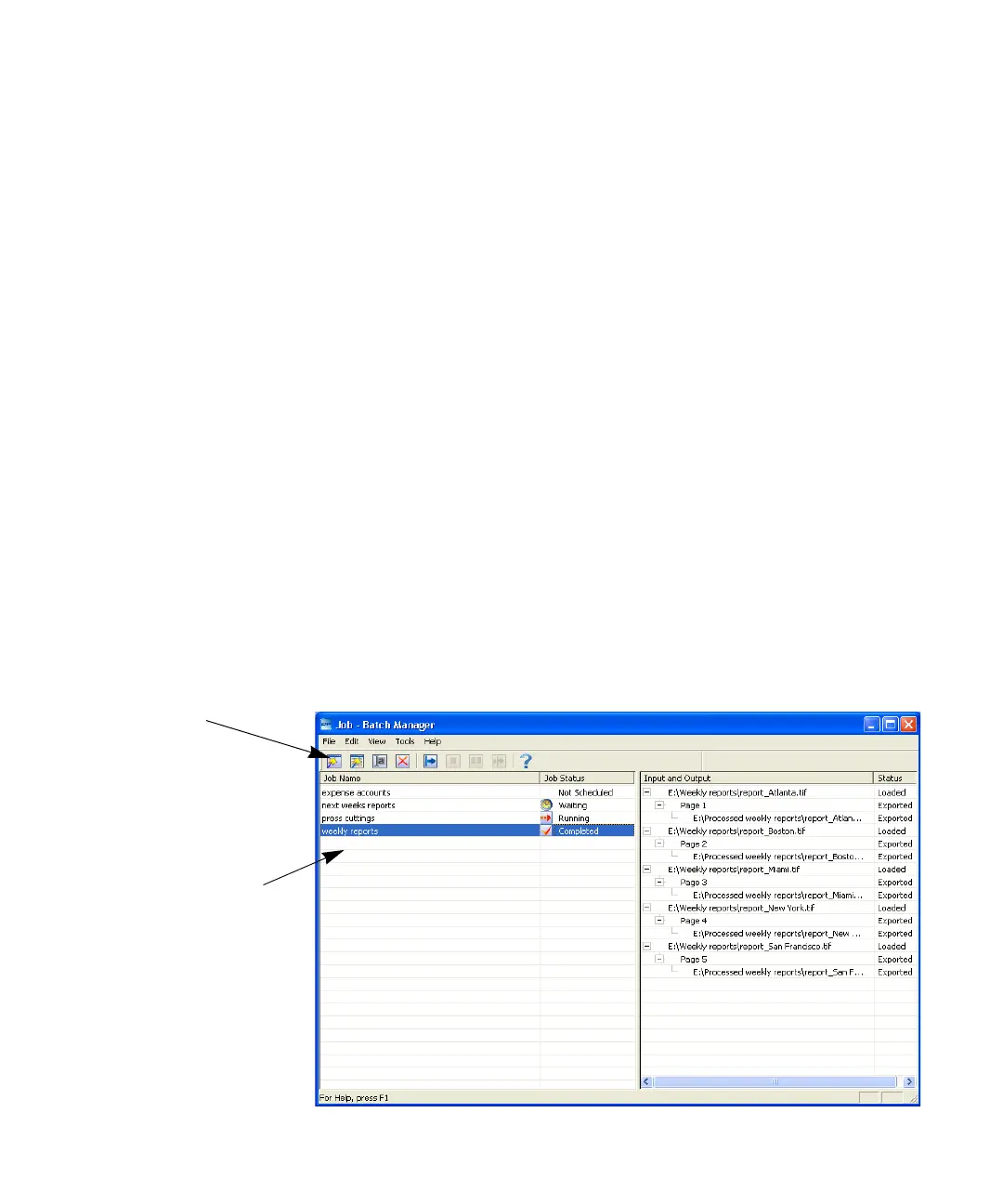 panel lists each job and its status. This will be: