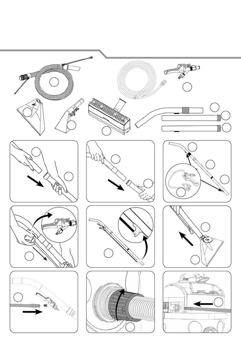 Wet / Assembling the machine for extraction use, Nass – Zusammenbau des Geräts vor der Extraktion,