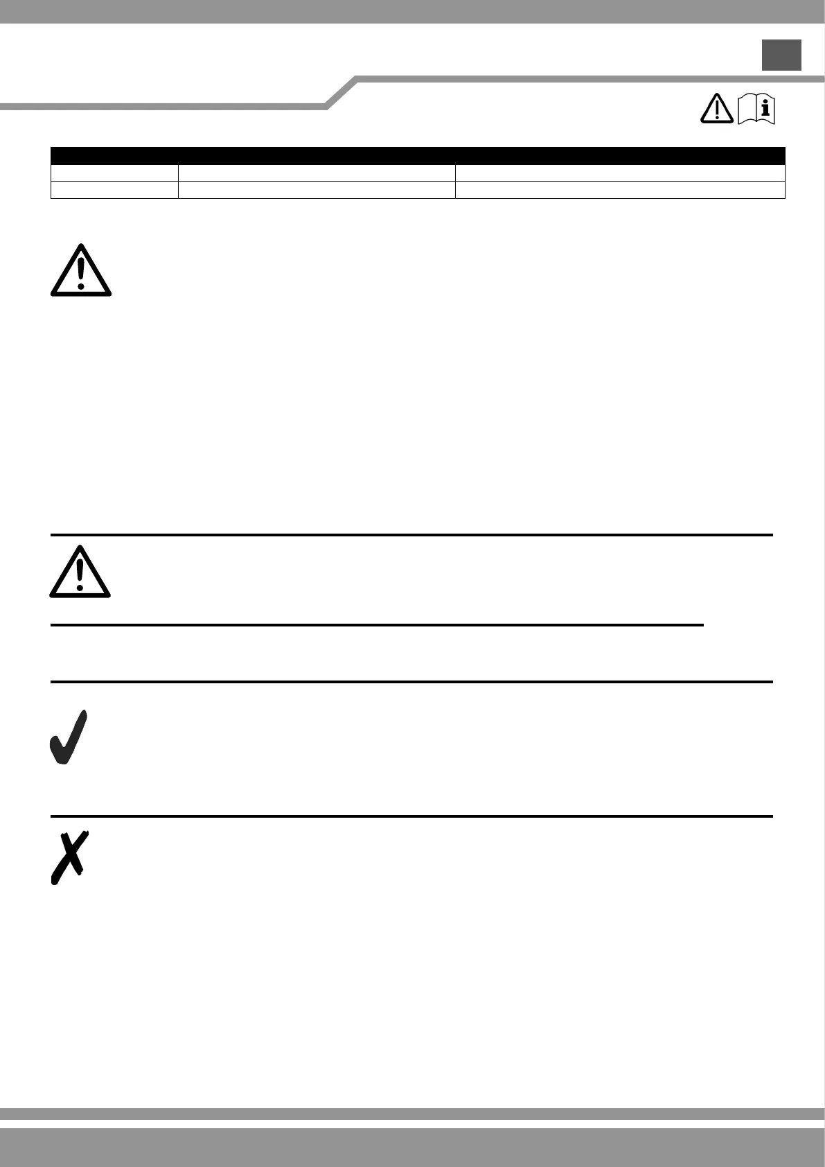 • SØRG FOR, at arbejdsområdet er ryddet for forhindringer og/eller mennesker.