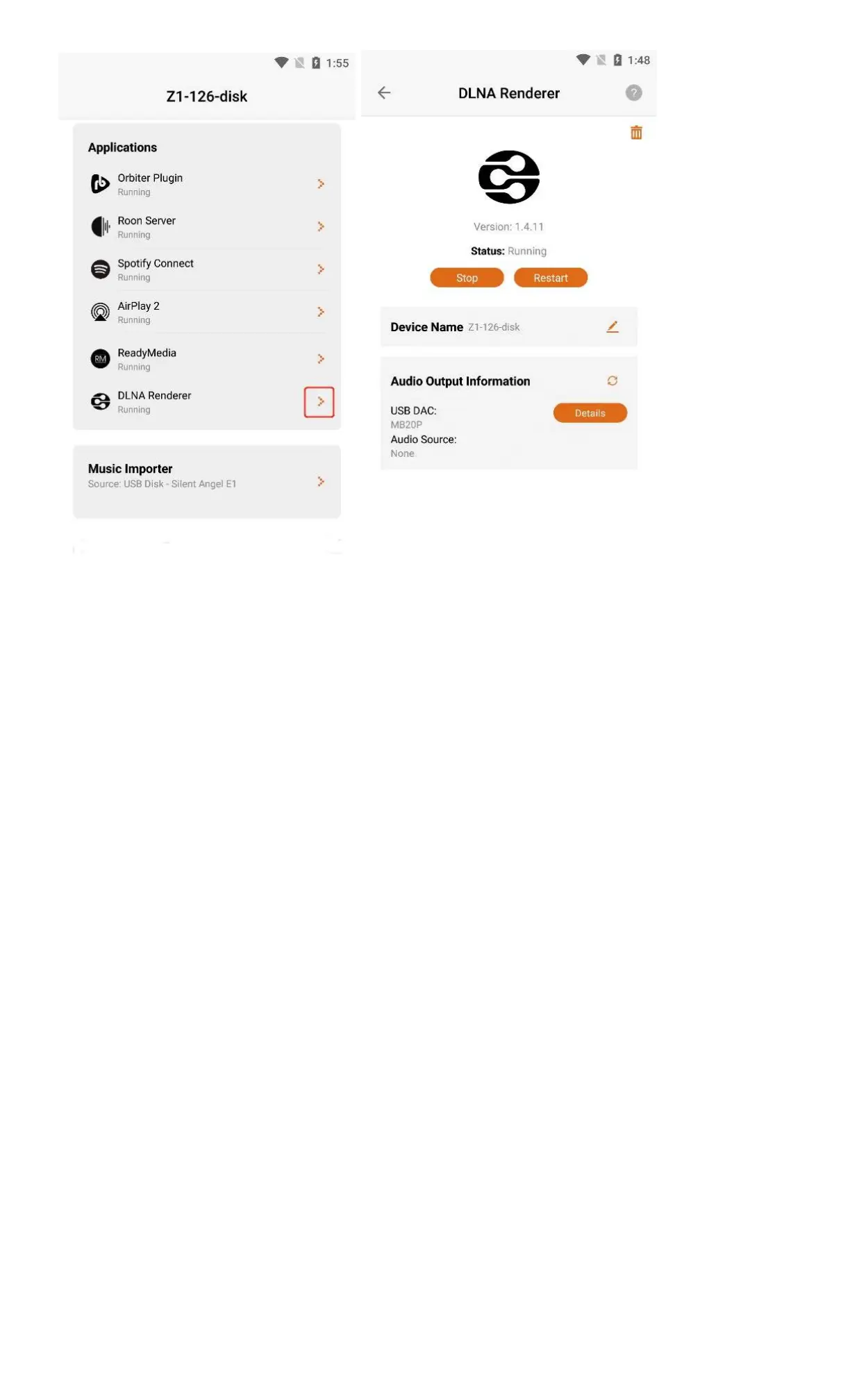 After entering the " DLNA Renderer " application interface, you can view the "