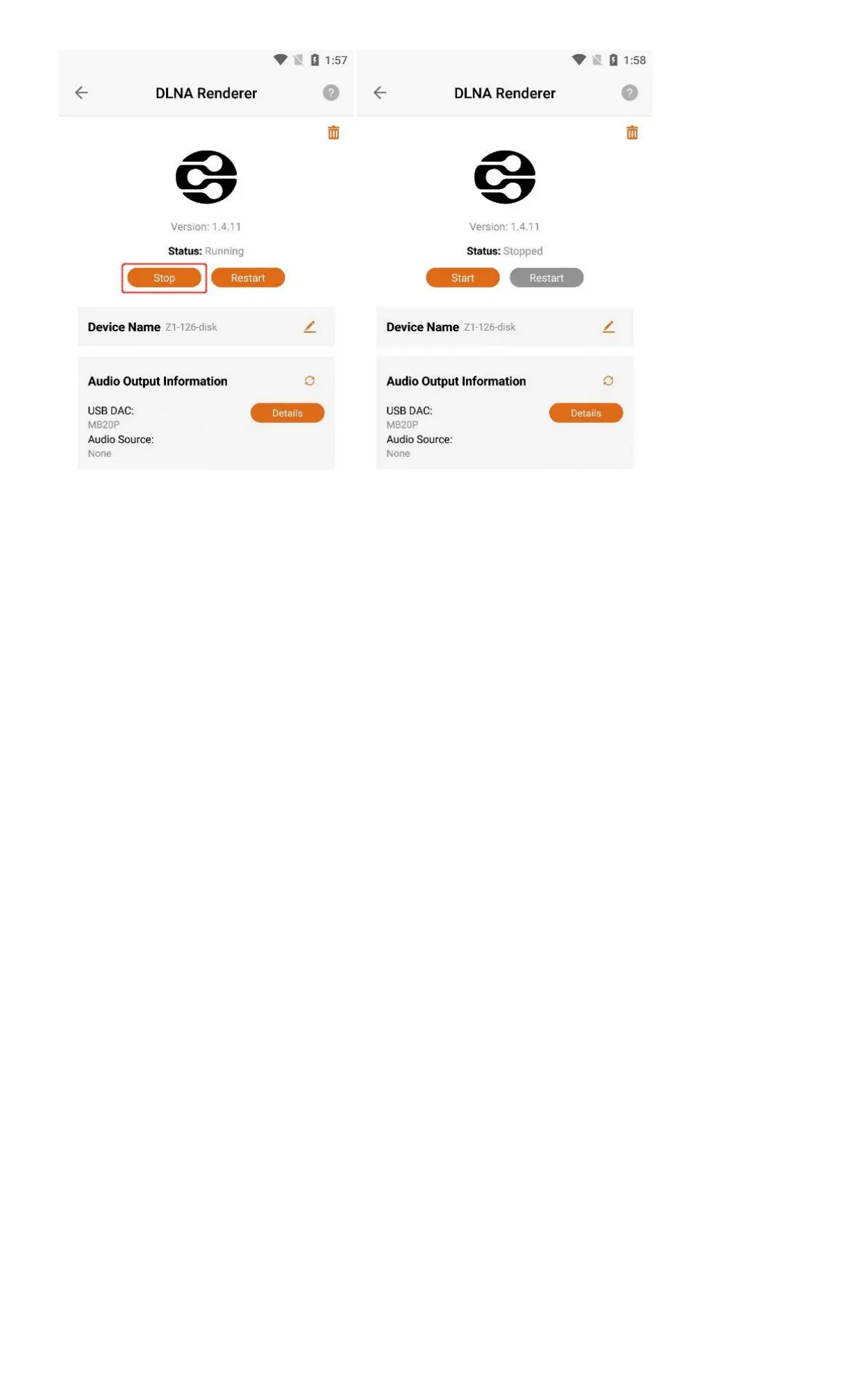 When the status bar shows "Running" , Click the "Restart" button to restart the DLNA