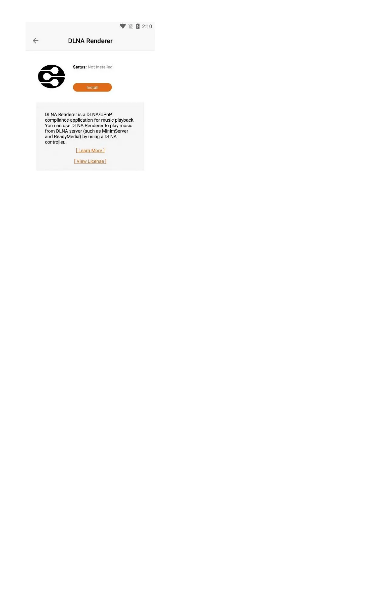 When the DLNA renderer status is "Not Installed" , Click the "Install" button to start the