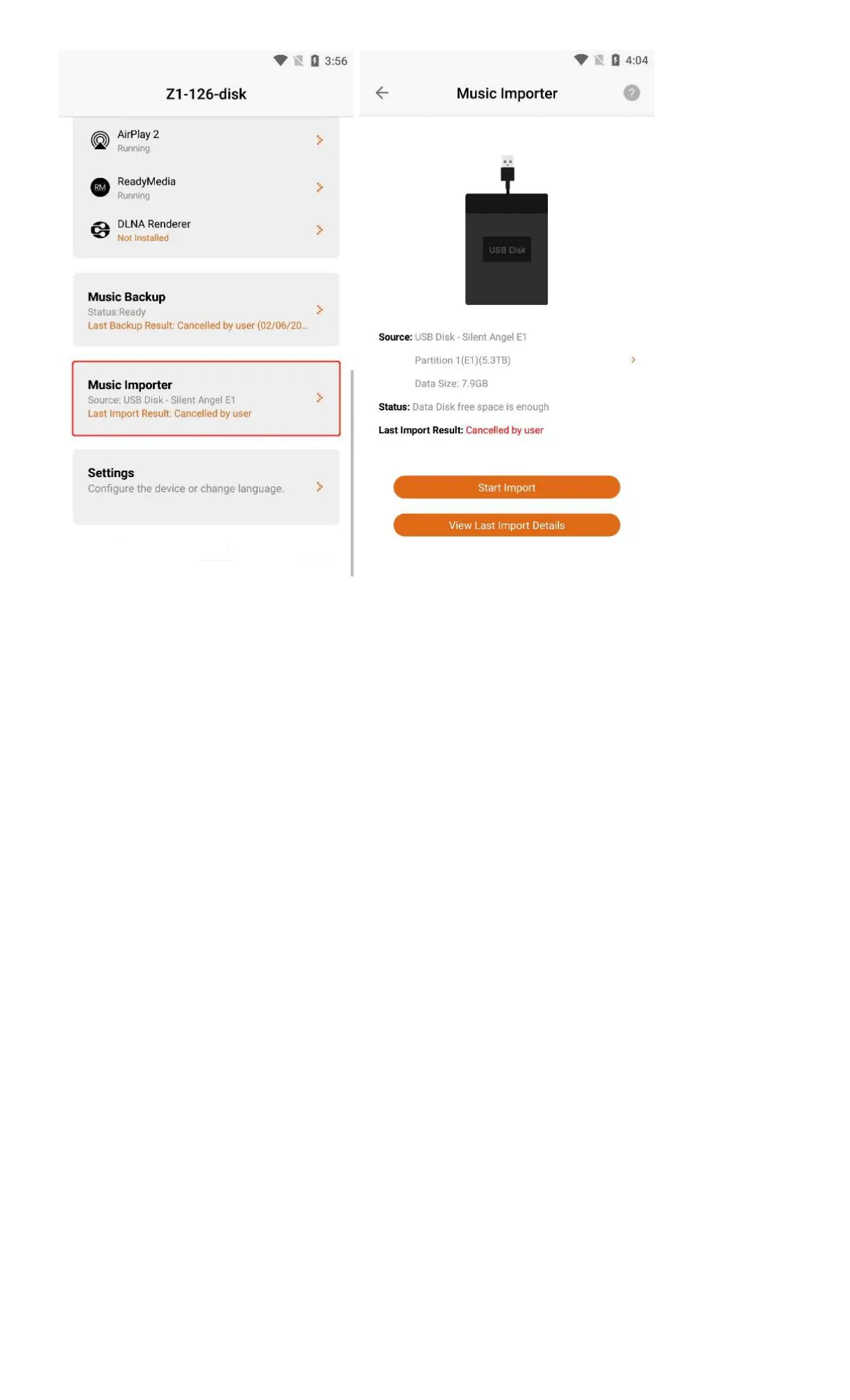 Import " to import the music from the specified partition of the external " U Disk " to the "