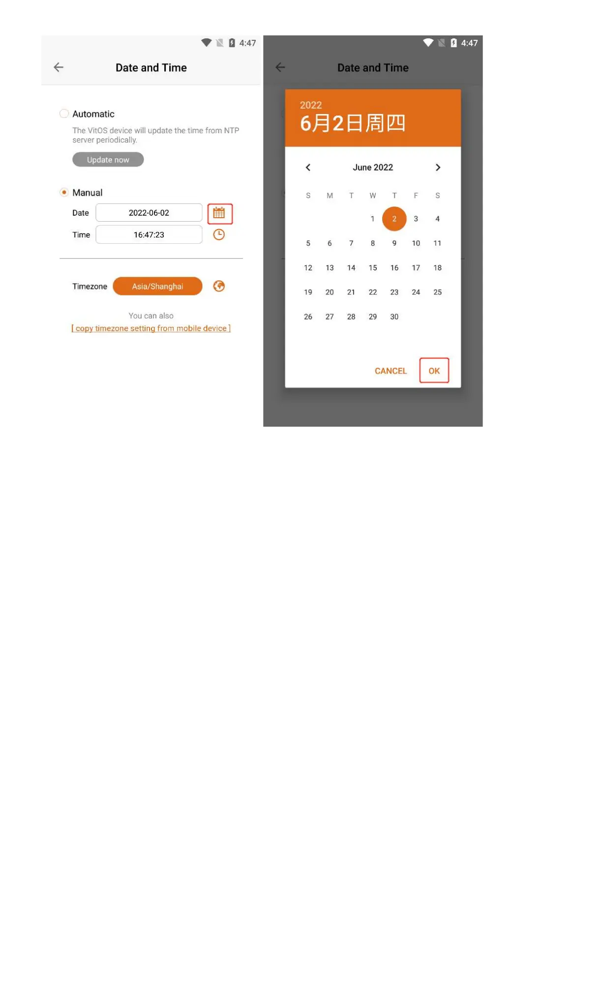 Click the button to the right of "Time" to enter the "Select Date " interface, select and