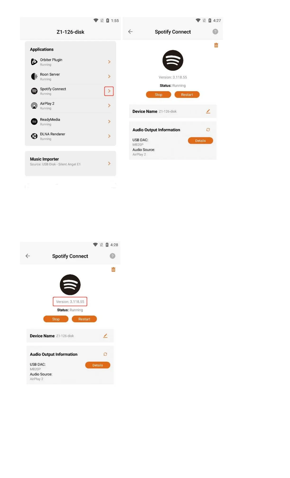 Click the "?" button in the upper right corner to view the "Spotify Connect"