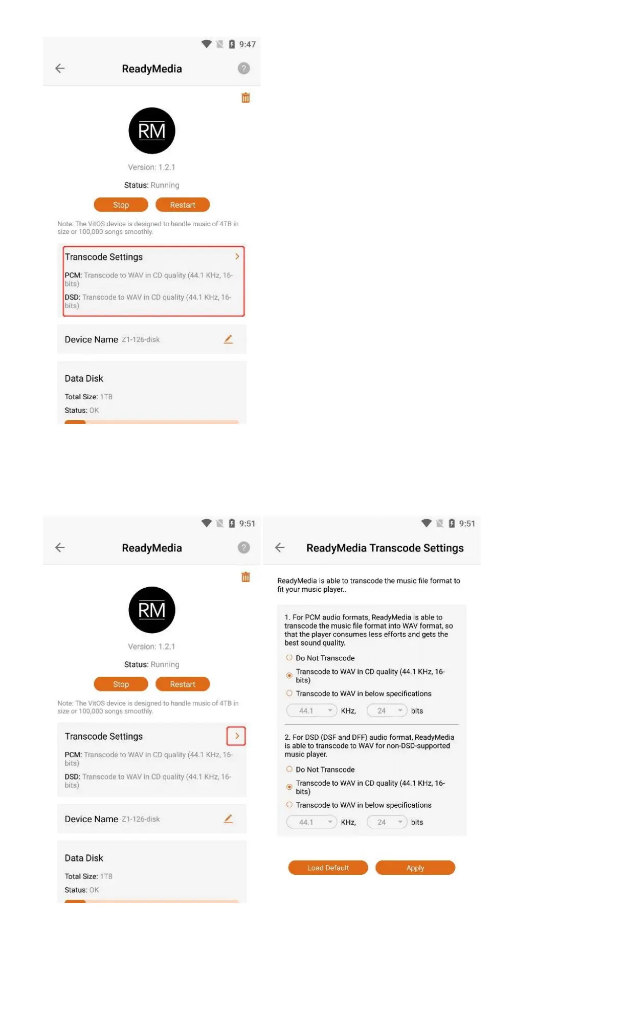 Click the ">" button corresponding to "Transcode Settings" to enter the operation