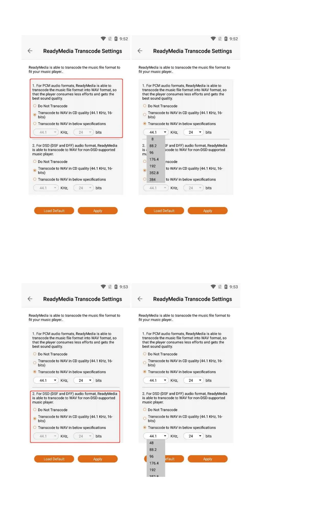 "DSD" audio format, Click the circular button of the corresponding option, and then Click