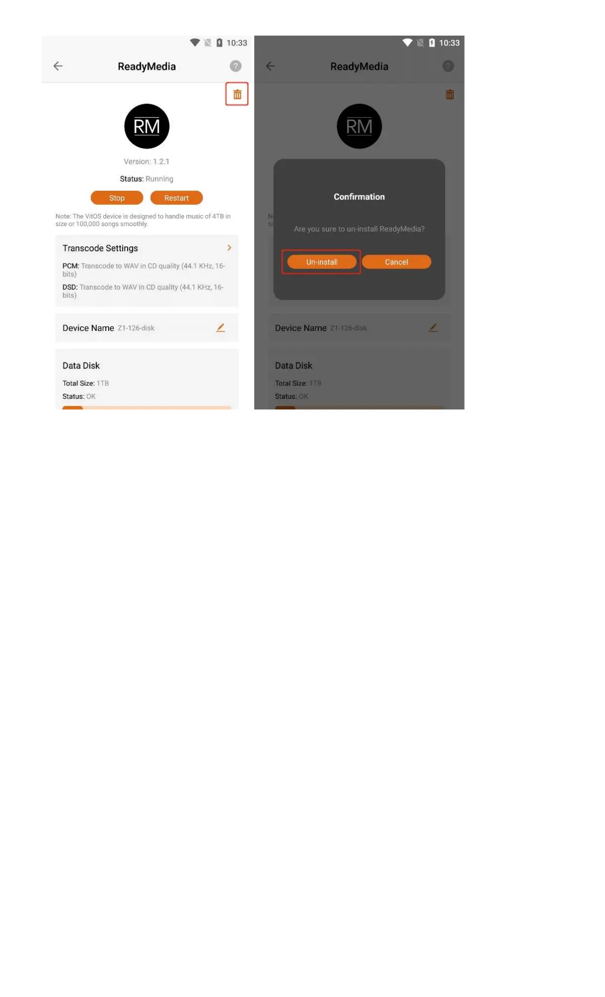 Clicking the "Uninstall" button, the "ReadyMedia" application can be uninstalled,