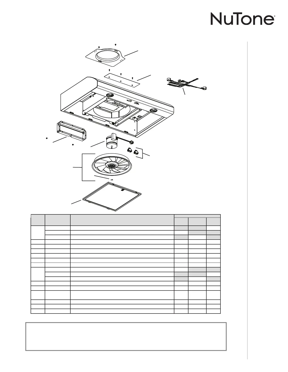 Broan-NuTone LLC genuine replacement parts are specially designed for each unit and are manufactured to comply with all the applicable