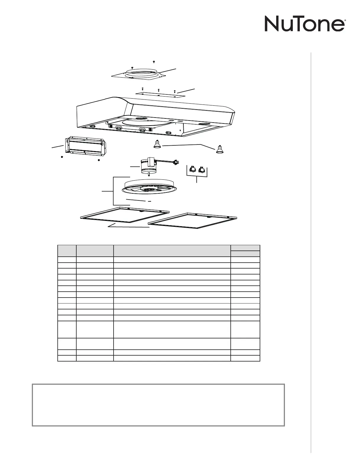 Pour assurer le bon fonctionnement de votre appareil, vous devez toujours utiliser des pièces d’origine provenant de Broan-NuTone LLC.