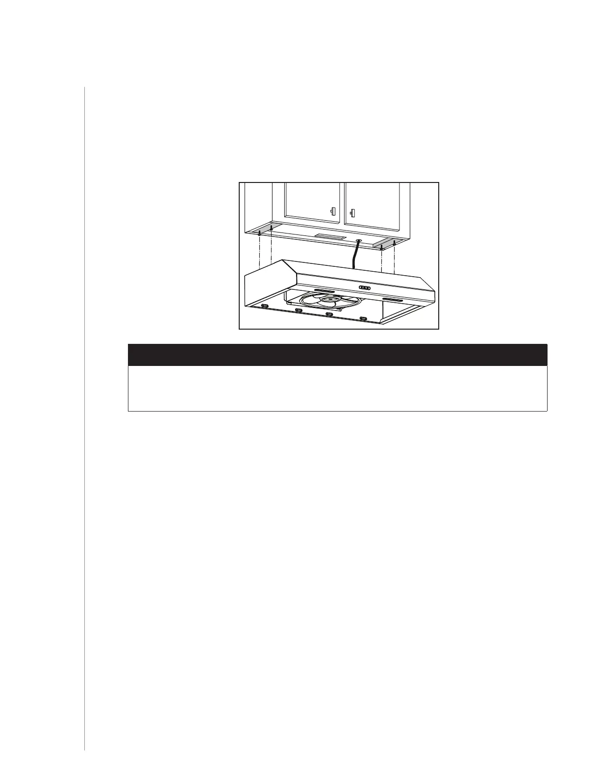 2 ] Hang hood from (4) mounting screws previously installed. Slide hood back towards wall until